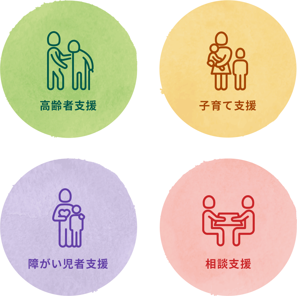 「赤ちゃんから看取りまで」人生のすべてのステージで必要とされる支援、応援をすることを目指しています。支援される人もされる人も地域の一員として役割を持ち、共に社会を作っていく。地域づくりの視点から福祉を考え、取り組んでいます。